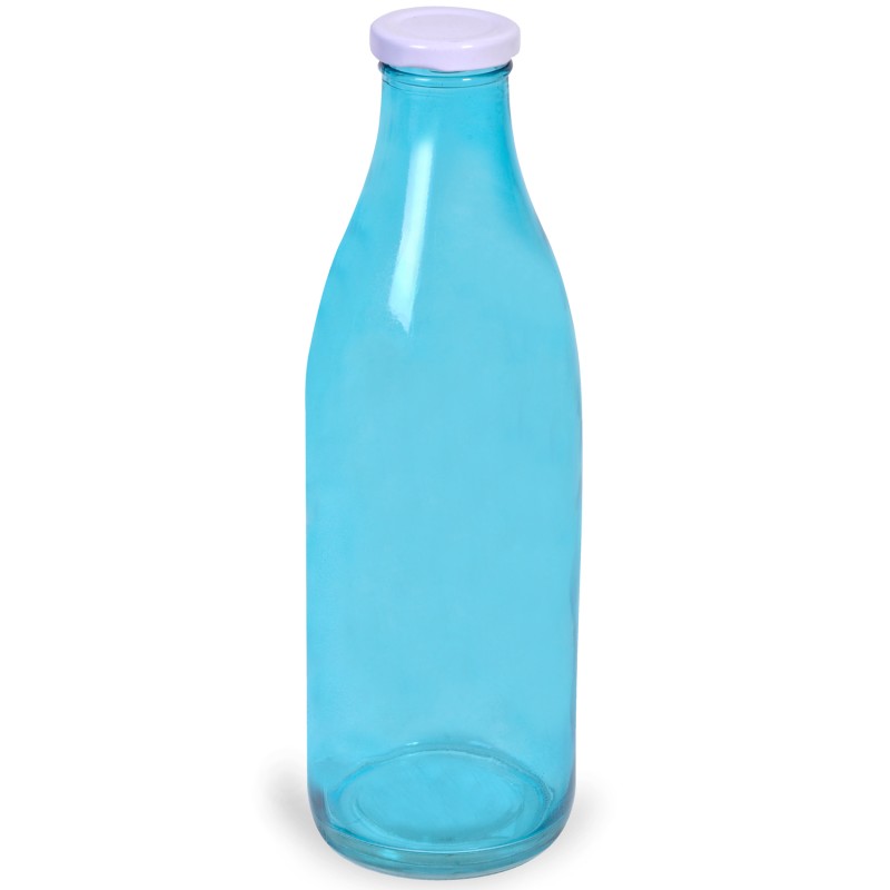 Стъклена бутилка за вода - синя - метална капачка - 1 л.