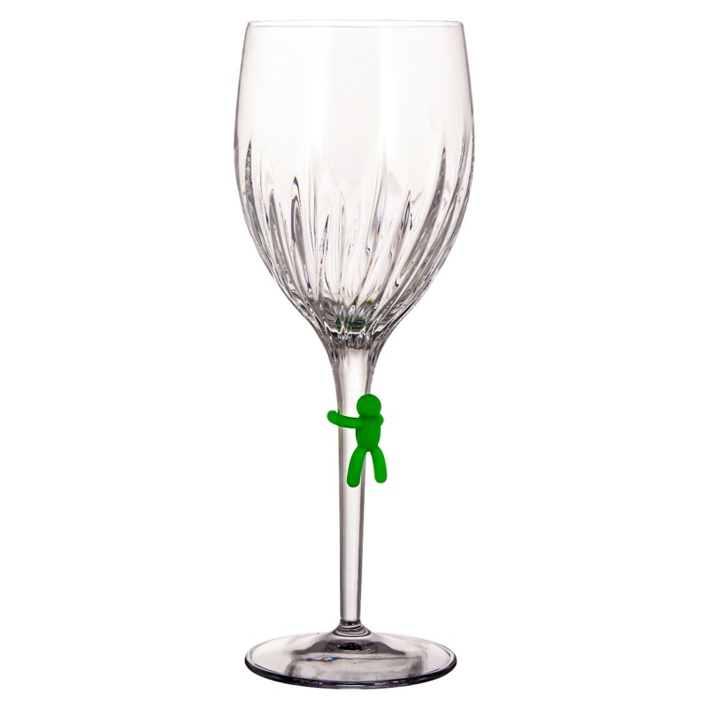 Комплект от 6 броя идентификатори за винени чаши във формата на човече, изработени от здрава пластмаса в различни цветове - жълт, син, червен, зелен, лилав и розов.