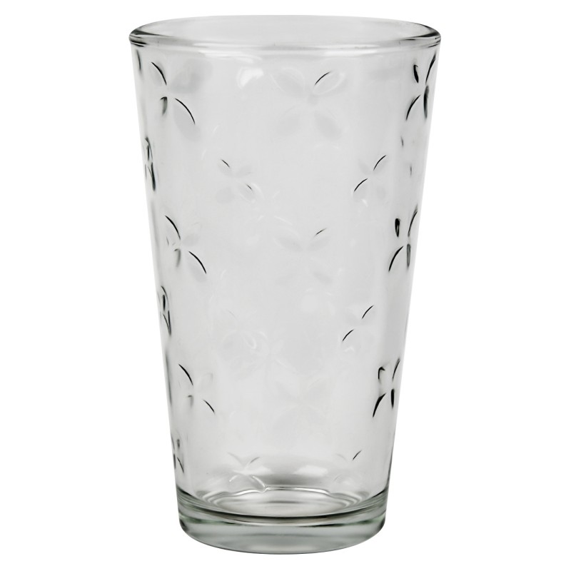 Водна чаша, изработена от качествено и устойчиво прозрачно стъкло с релефни стилизирани флорални мотиви.