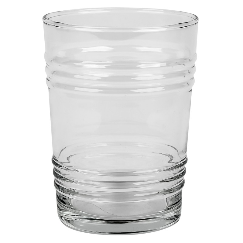 Водна чаша, изработена от качествено прозрачно стъкло с релефен дизайн, имитиращ бъчва.