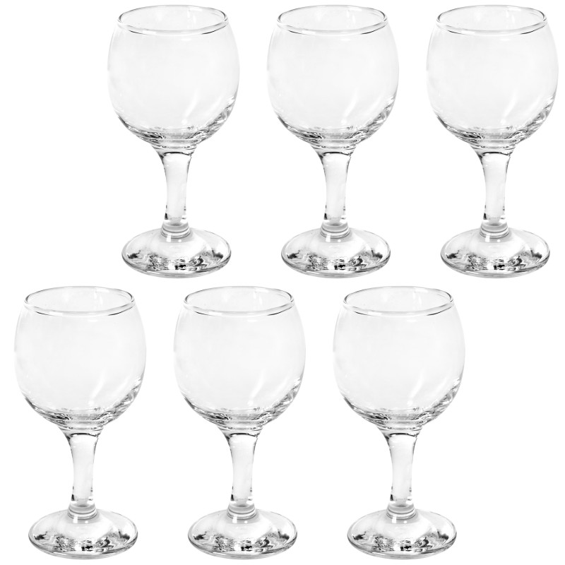 Сервиз от 6 броя чаши за вино със столче, изработени от качествено и устойчиво прозрачно стъкло.