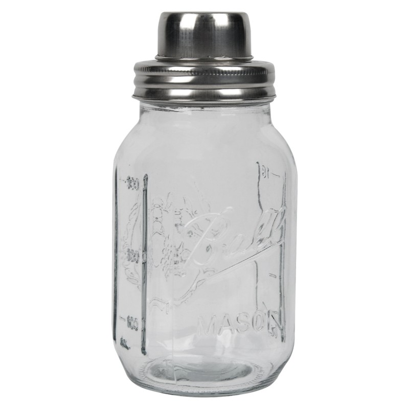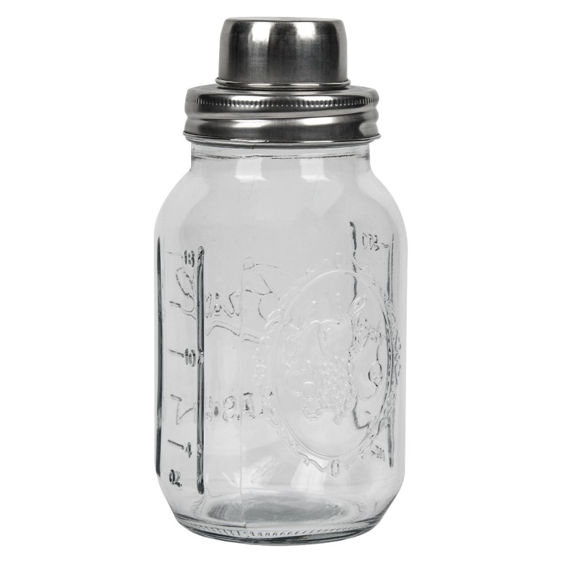 Шейкър за коктейли, изработен от висококачествено прозрачно стъкло с мерителна скала и двоен метален капак.