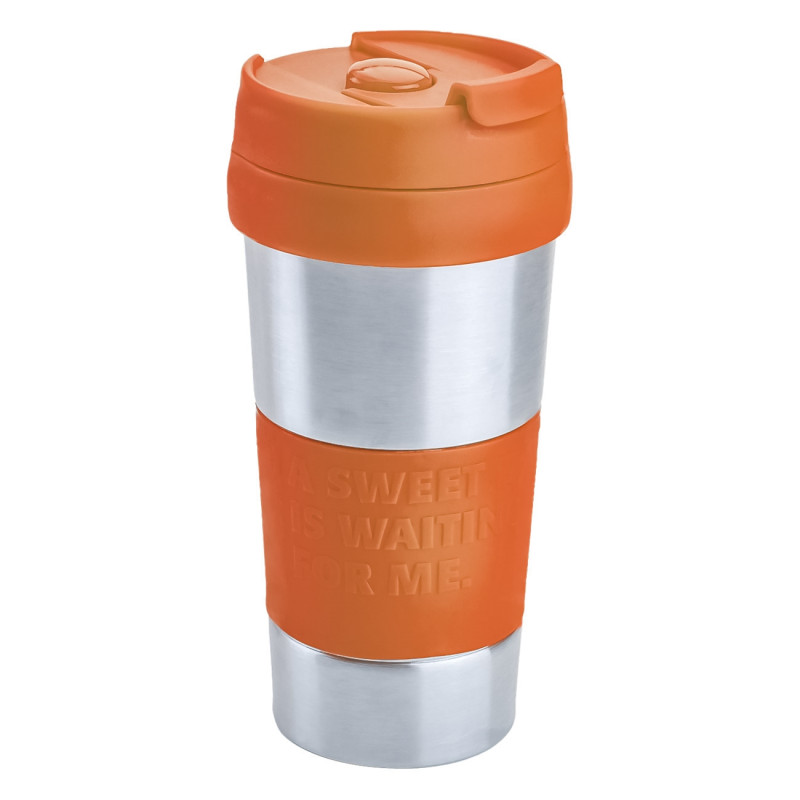 Шейкър за приготвяне на фрапе, изработен от неръждаема стомана и качествена пластмаса с капак.