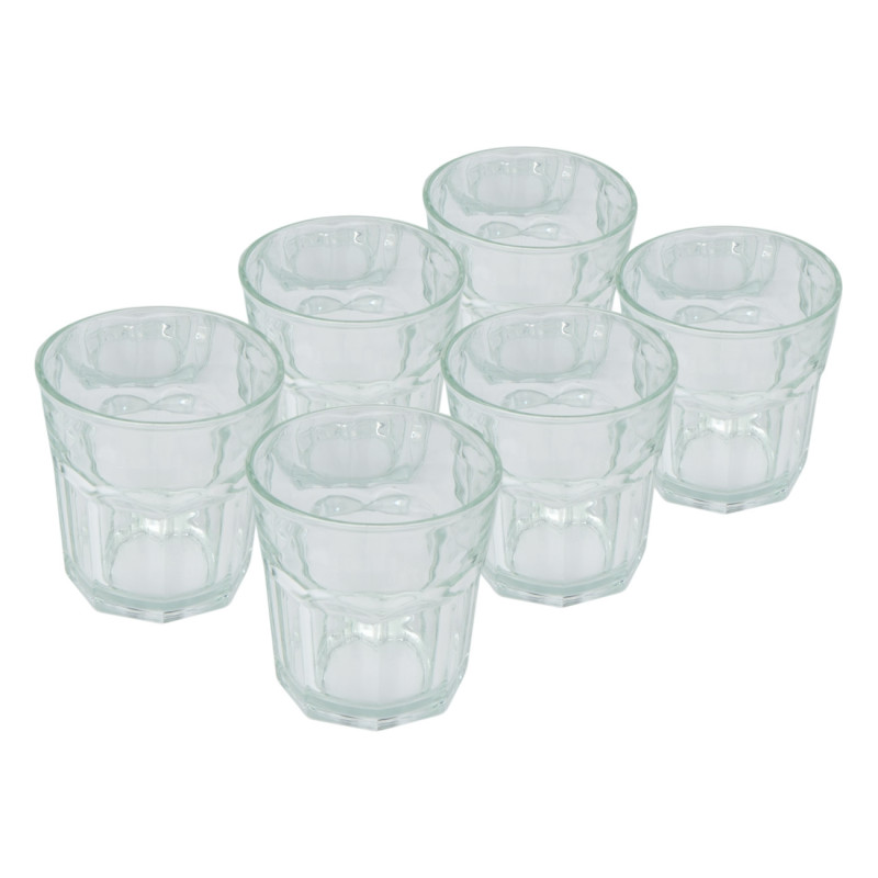Сервиз от 6 броя универсални чаши, изработени от плътно и прозрачно стъкло с подсилено дъно.