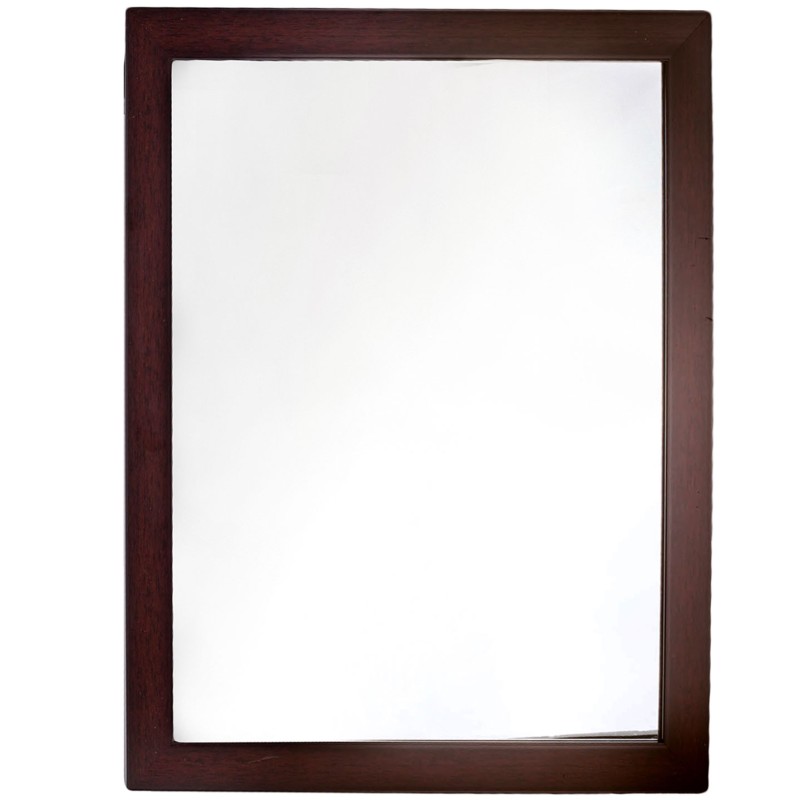 Класическо стенно огледало с правоъгълна форма и тъмно кафява рамка.
