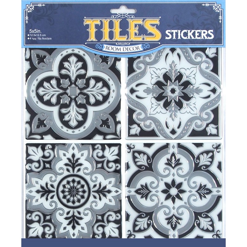 Комплект от 4 броя декоративни стикери за плочки с красиви орнаменти в сиви нюанси.