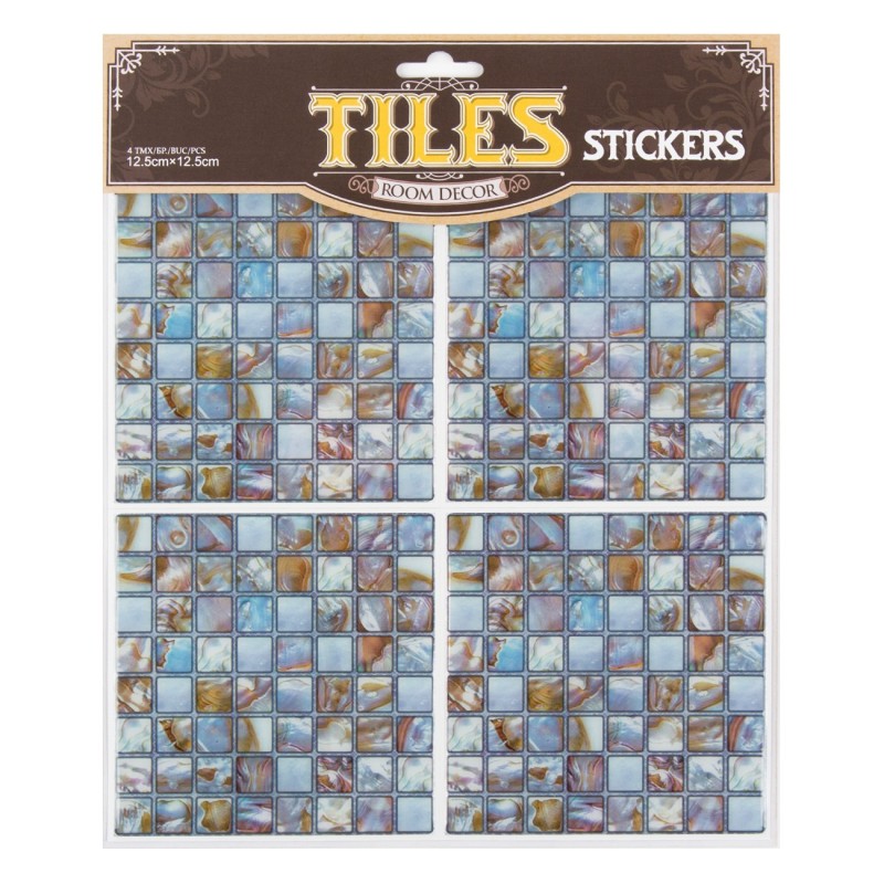 Комплект от 4 броя декоративни стикери за плочки с квадратчета в сини и кафяви шарки.