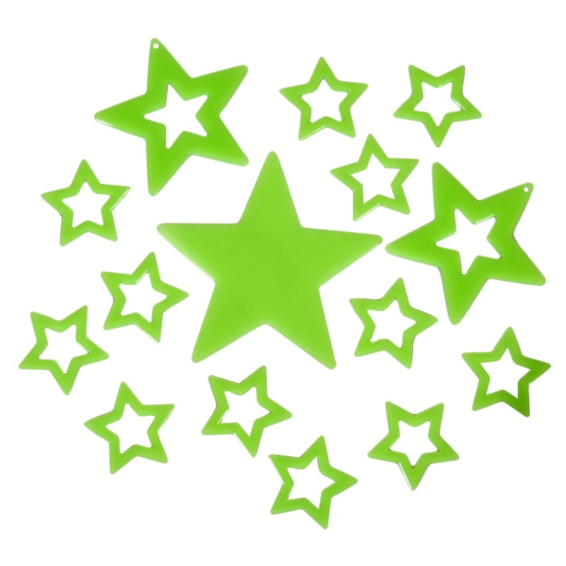 Комплект от 14 броя фосфоресциращи стикери за стена във формата на звезди, с помощта на които ще пренесете звездното небе в стаята на Вашето дете.