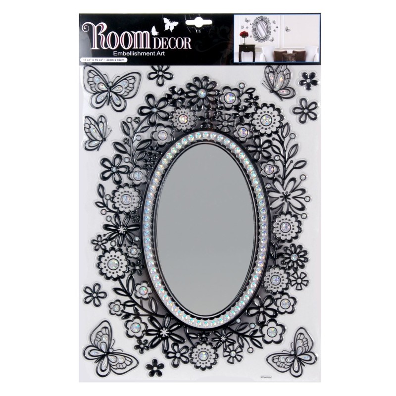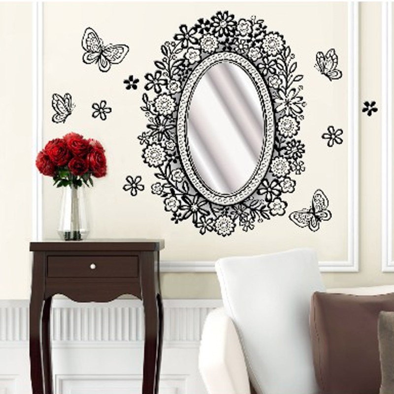 Стикер за стена във формата на старинно огледало с фллорални орнаменти и пеперуди.