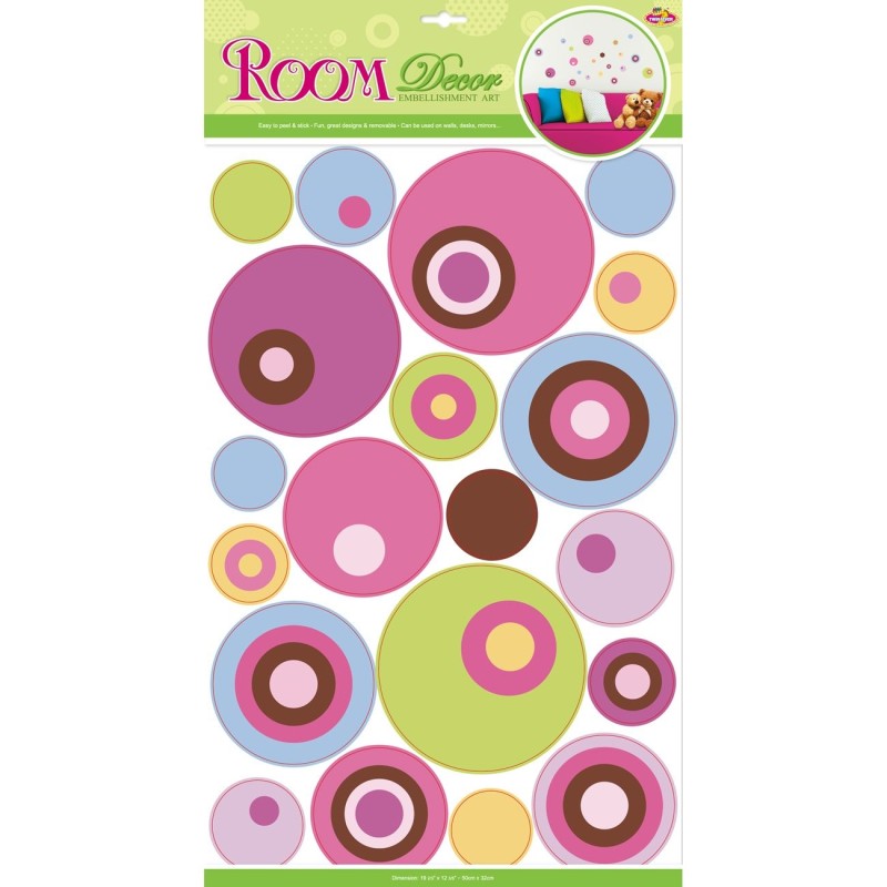 Декоративни стикери за стена във формата на кръгове с различни цветове и размери.