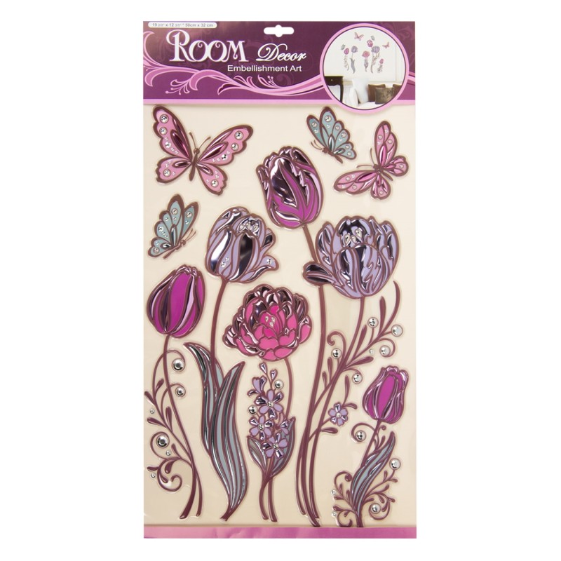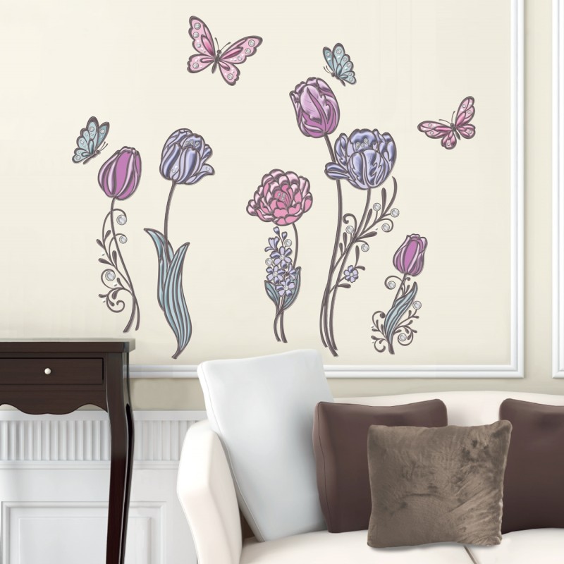 Декоративни стикери за стена от акрил във формата на красиви пролетни цветя и пеперуди.