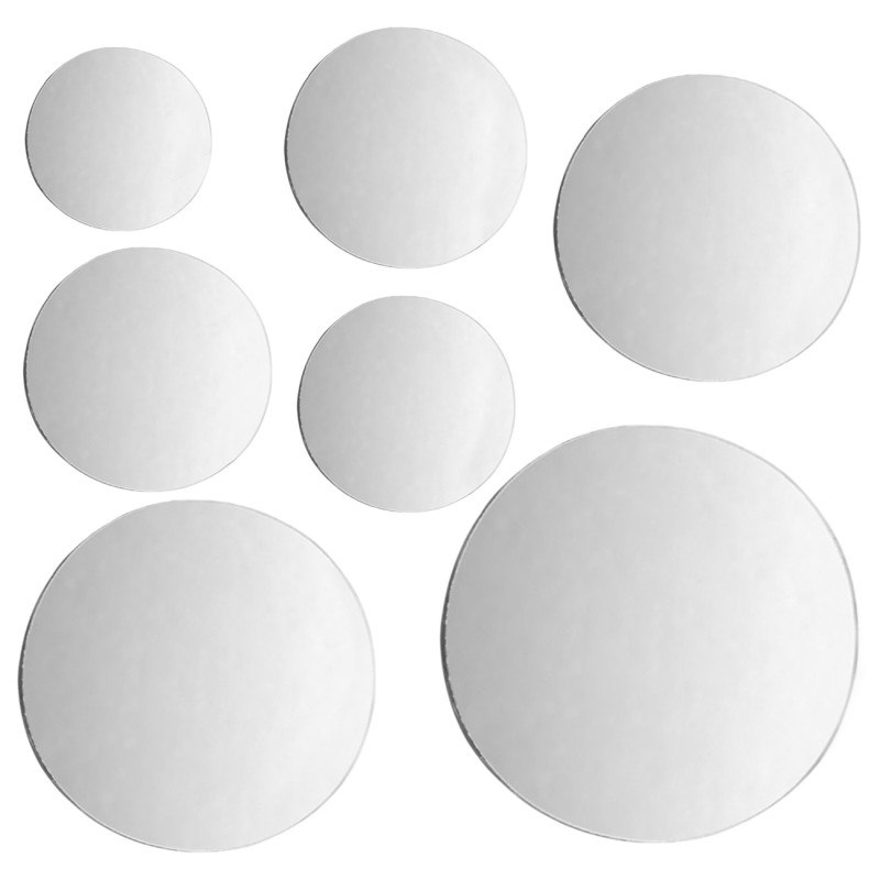 Комплект от 7 броя огледални стикери за стена от акрил във формата на кръгове с различни размери.