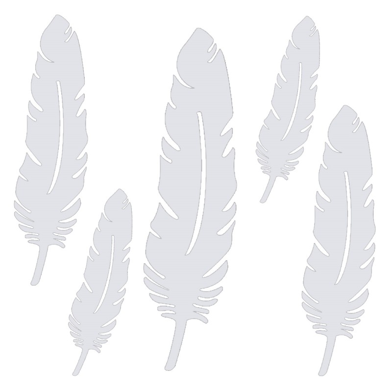 Комплект от 5 броя огледални стикери за стена от акрил във формата на пера с различни размери.
