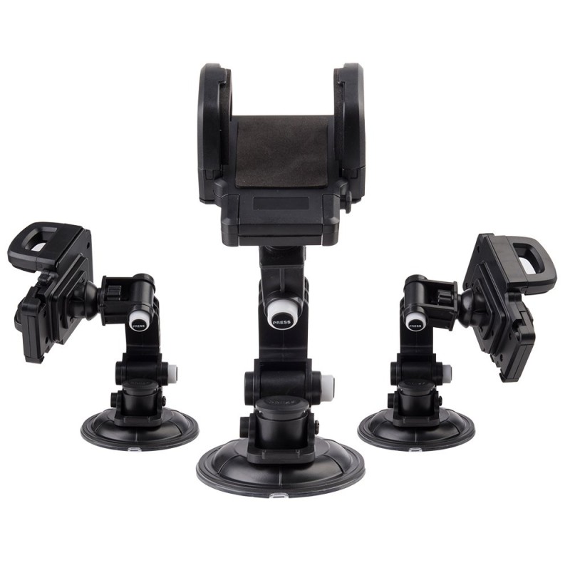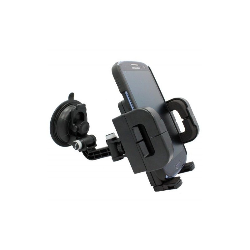 Изработен с удобен и функционален дизайн. Притежава вакуумна основа със сигурно зекрепване БЕЗ риск от падане и автоматични щипки за здраво захващане на телефона.
