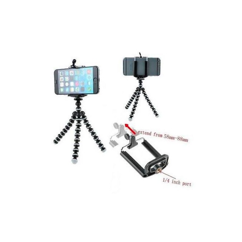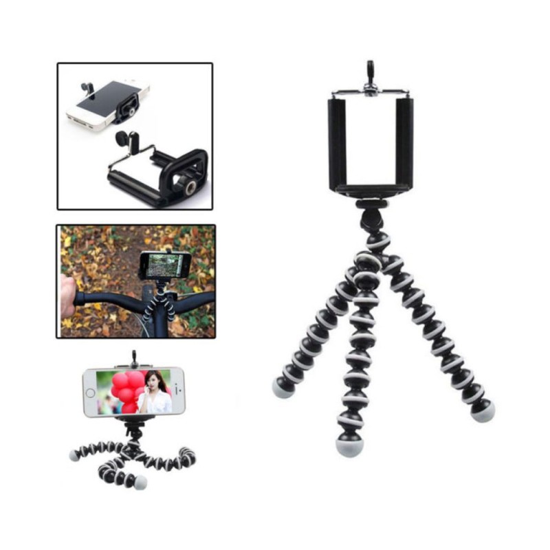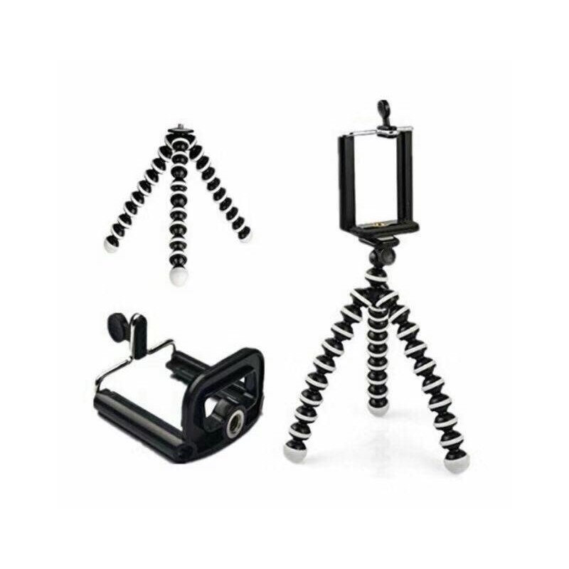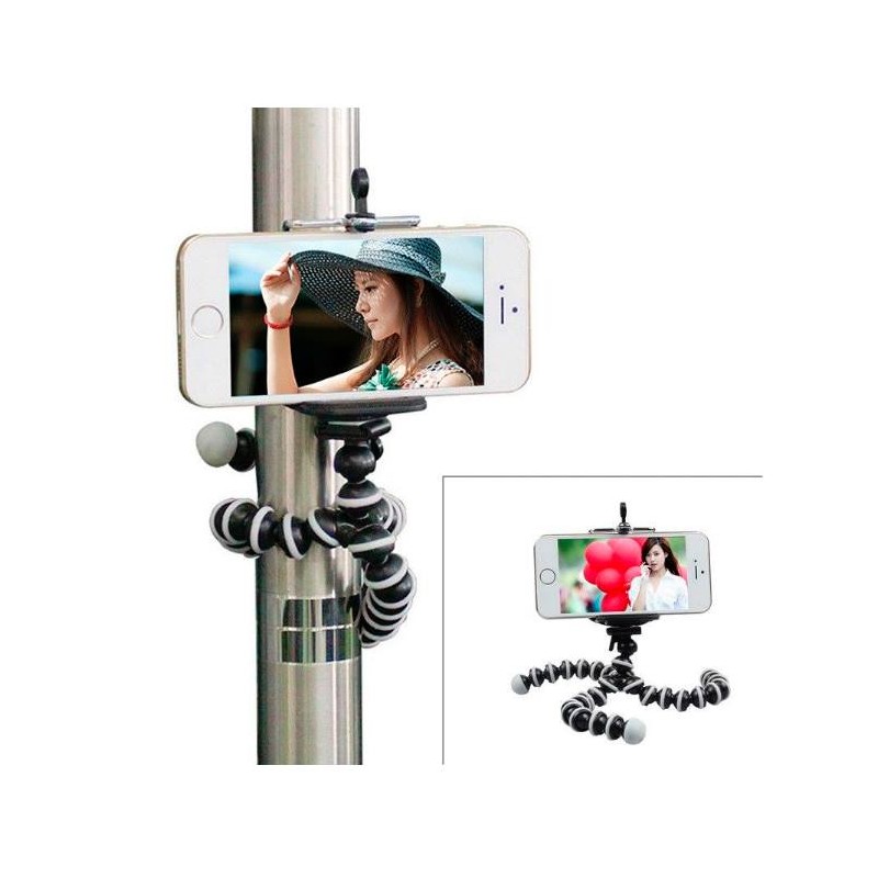 Статив за камера, фотоапарат или телефон, който може да бъде поставен навсякъде. Притежава огъващи се три крака със силиконови топчета, които се захващат здраво за всяка повърхност. Може да закрепите за велосипед, за клон, за всякаква нестандартна места или просто да поставите на равно.