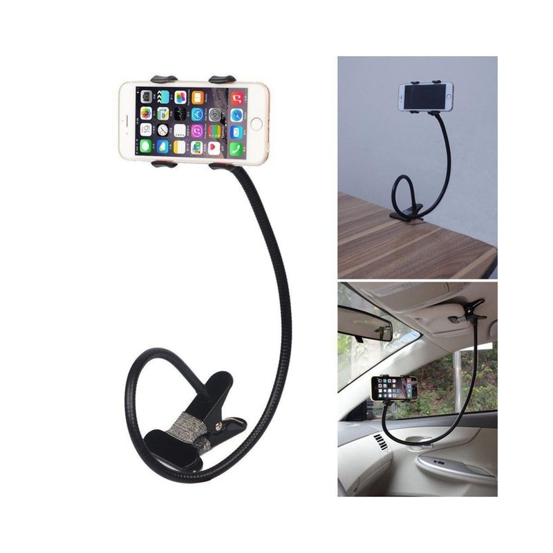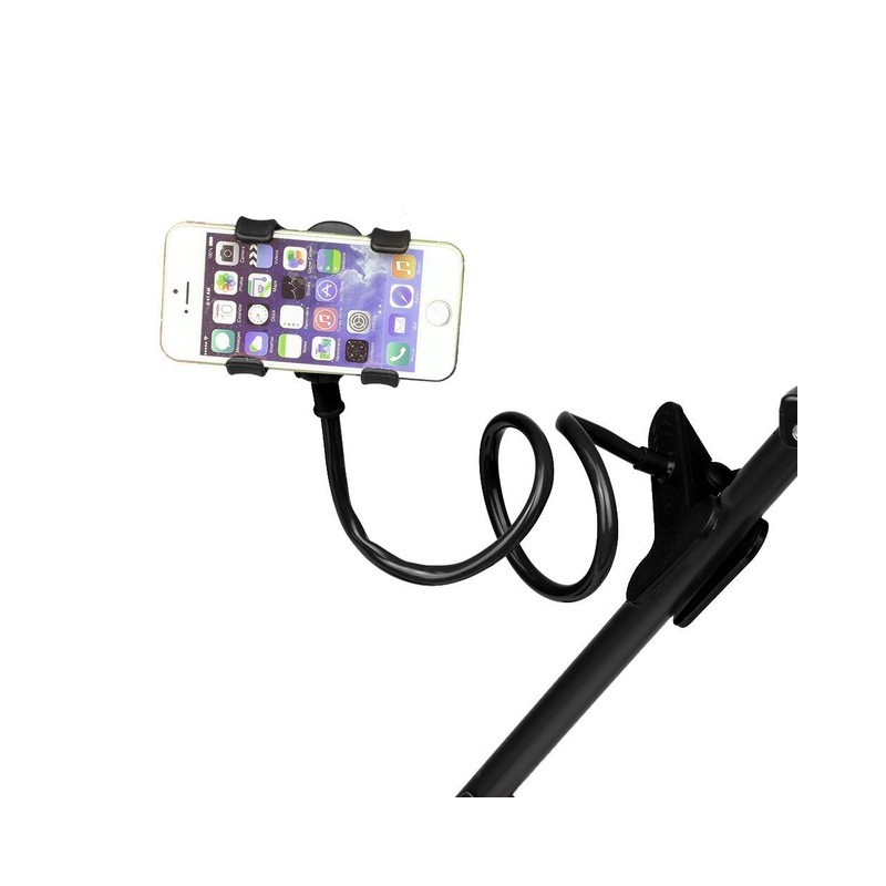 Универсална стойка за смартфон, камери, GPS и др. Стабилно се захваща за маса, бюро или за сенника на колата посредством масивна щипка. Разполага с дълго огъващо се рамо, което може многократно да бъде огънато в различни позиции. По този начин ще нагласите стойката най-удобно за Вас. Благодарение на тази стойка може да позиционирате телефона си във въздуха.