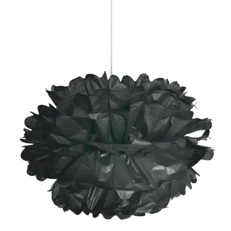 Висяща парти декорация във формата на помпон, изработена от хартия в черен цвят.