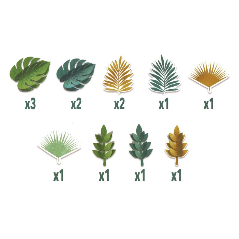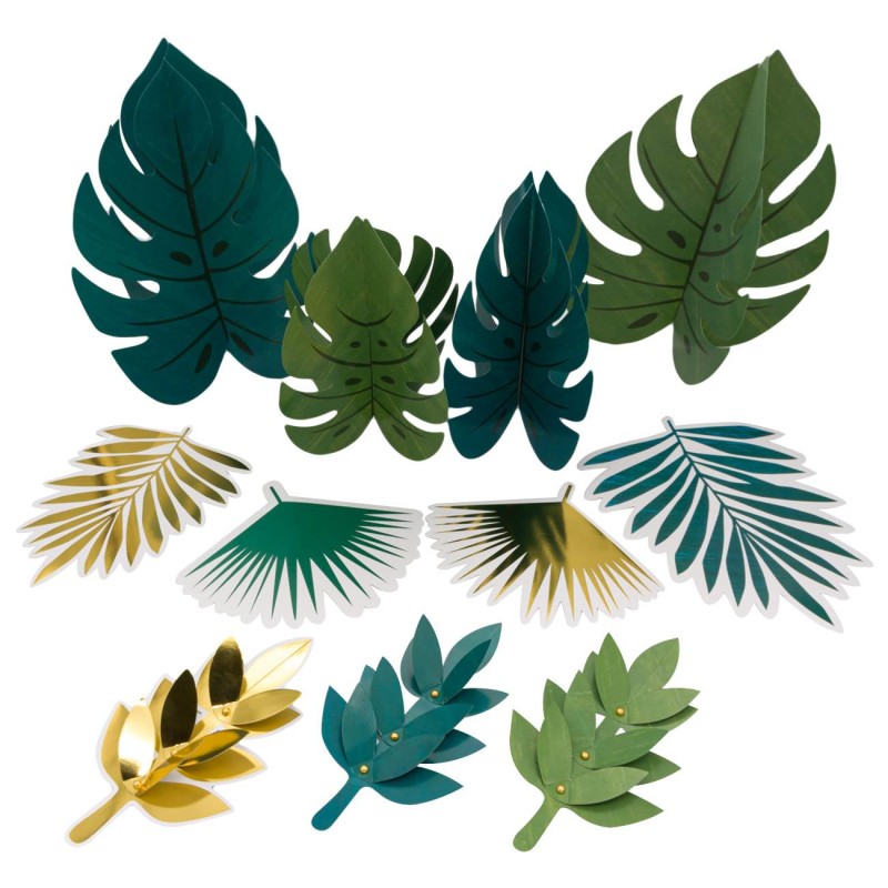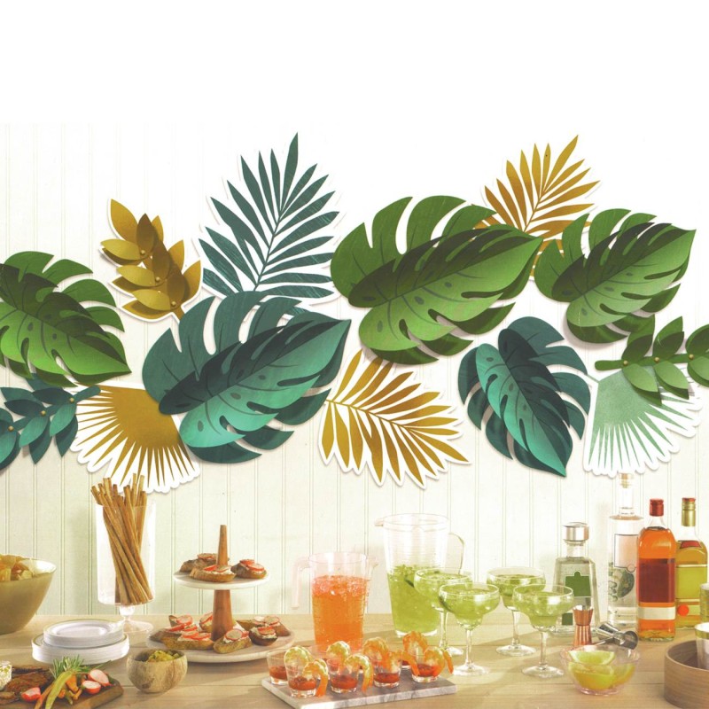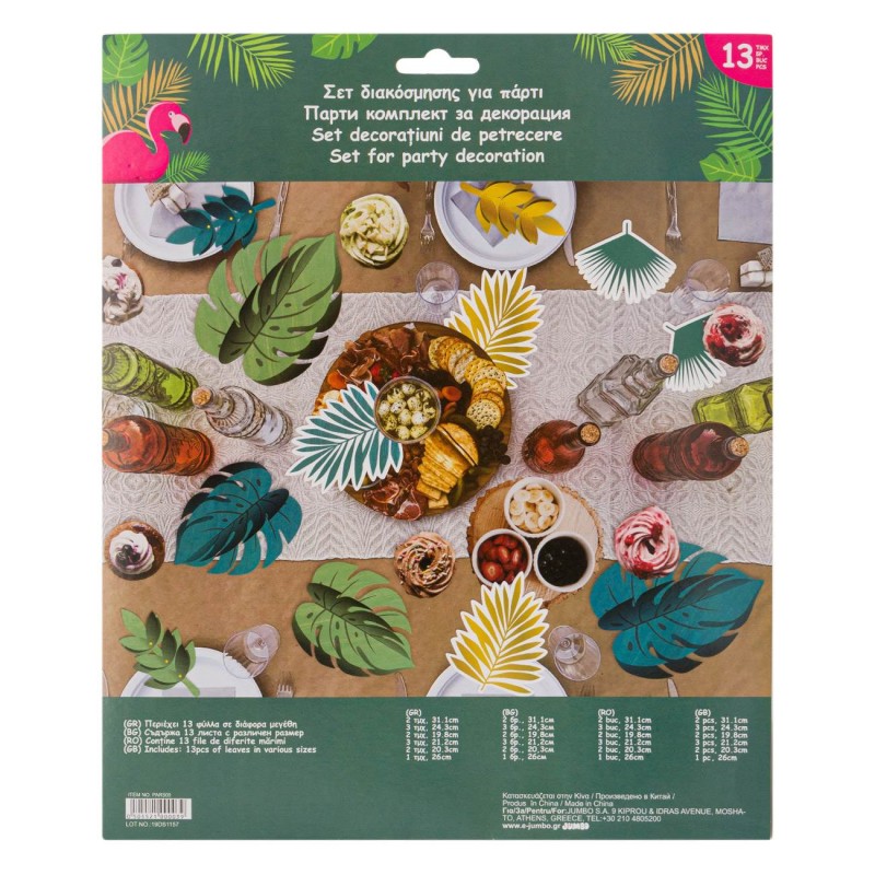 Парти коплект за декорация, включващ 13 броя тропически листа в различни размери, изработени от хартия.