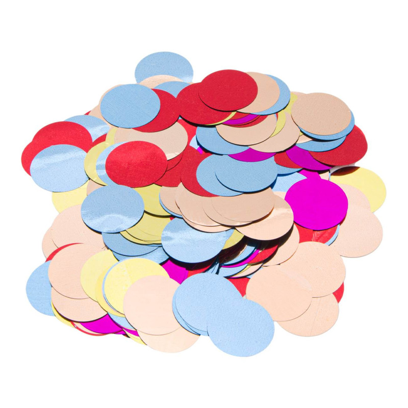 Парти декорация за маса тип конфети с кръгла форма, изработени от пластмаса в различни цветове с металически отблясък.