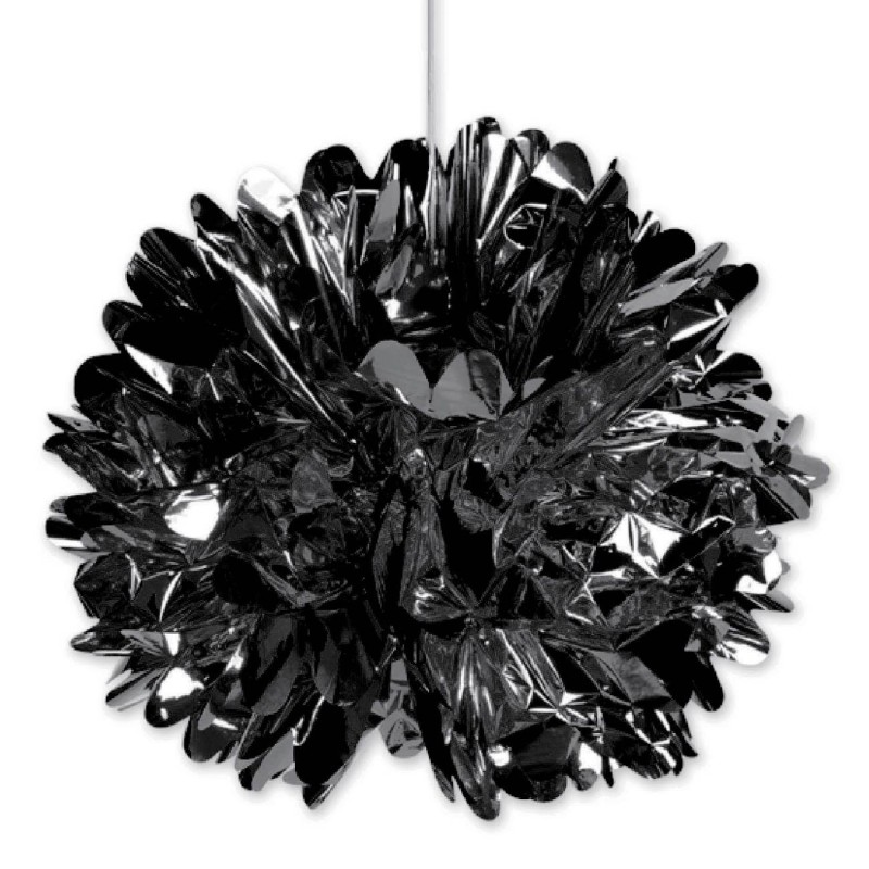 Висяща парти декорация във формата на помпон, изработена от хартия в цвят графит с металически отблясъци.