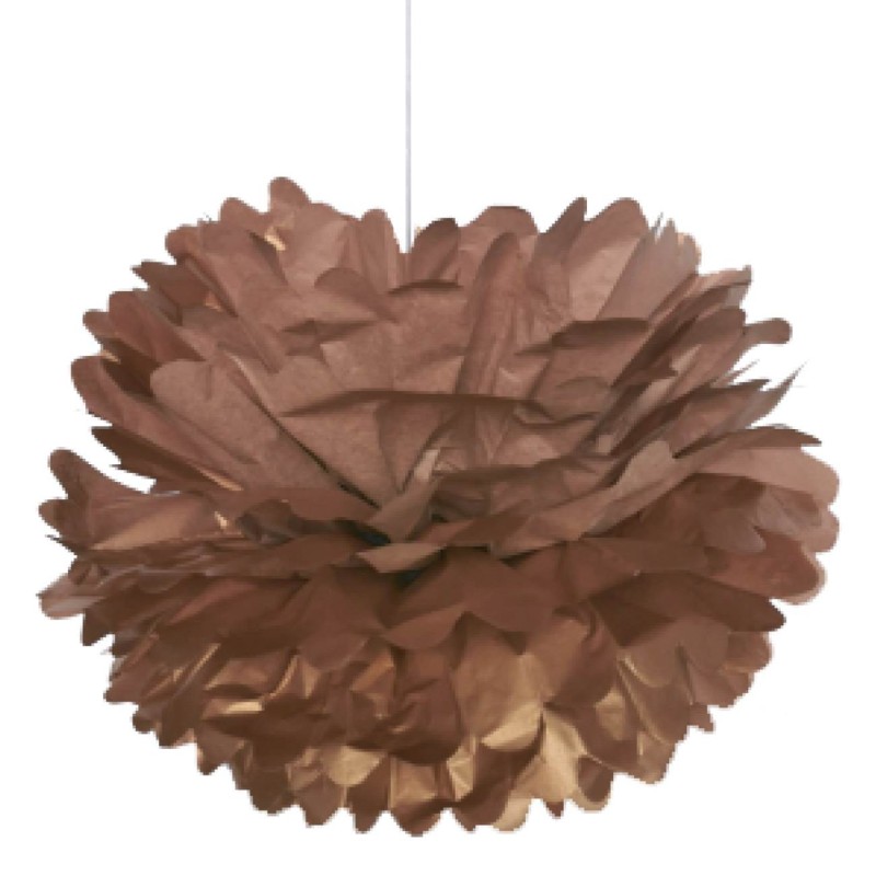 Висяща парти декорация във формата на помпон, изработена от хартия в цвят розово злато.