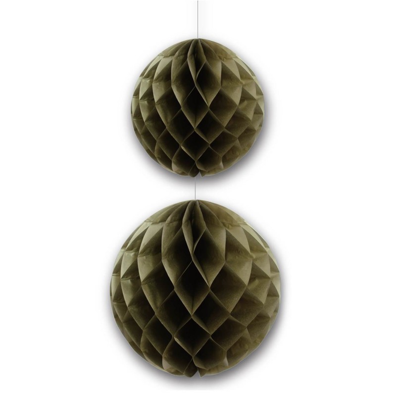 Комплект от 2 броя висящи парти декорации във формата на топка, изработени от хартия в цвят старо злато.