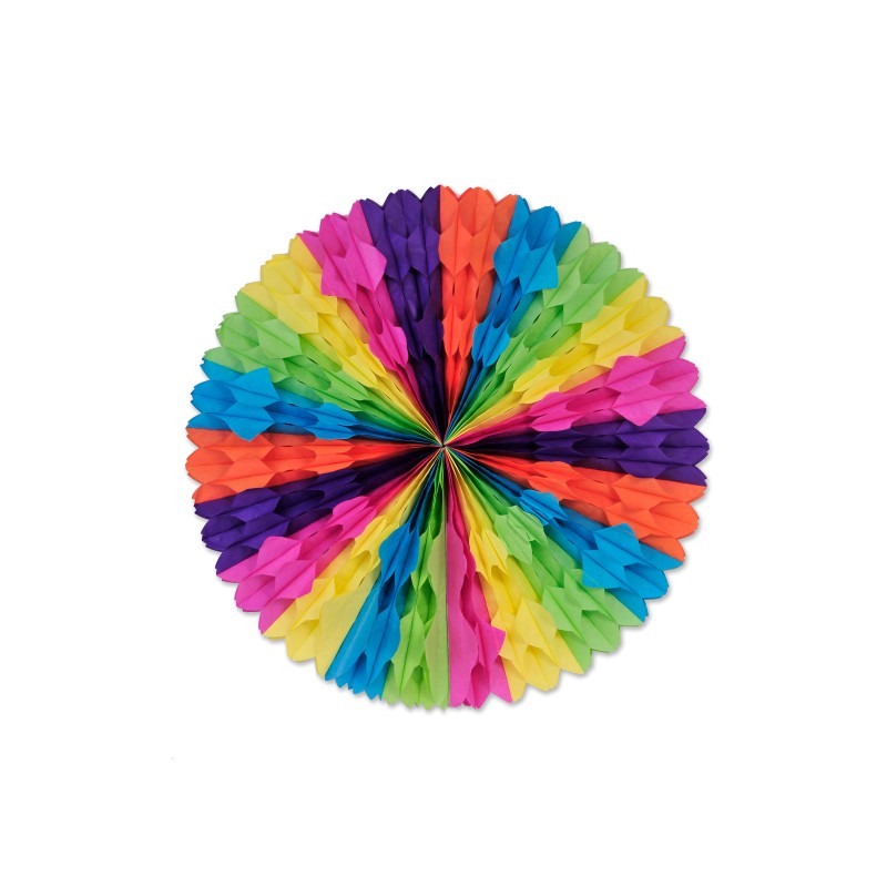 Висяща парти декорация във формата на ветрило, изработена от хартия в цветовете на дъгата.
