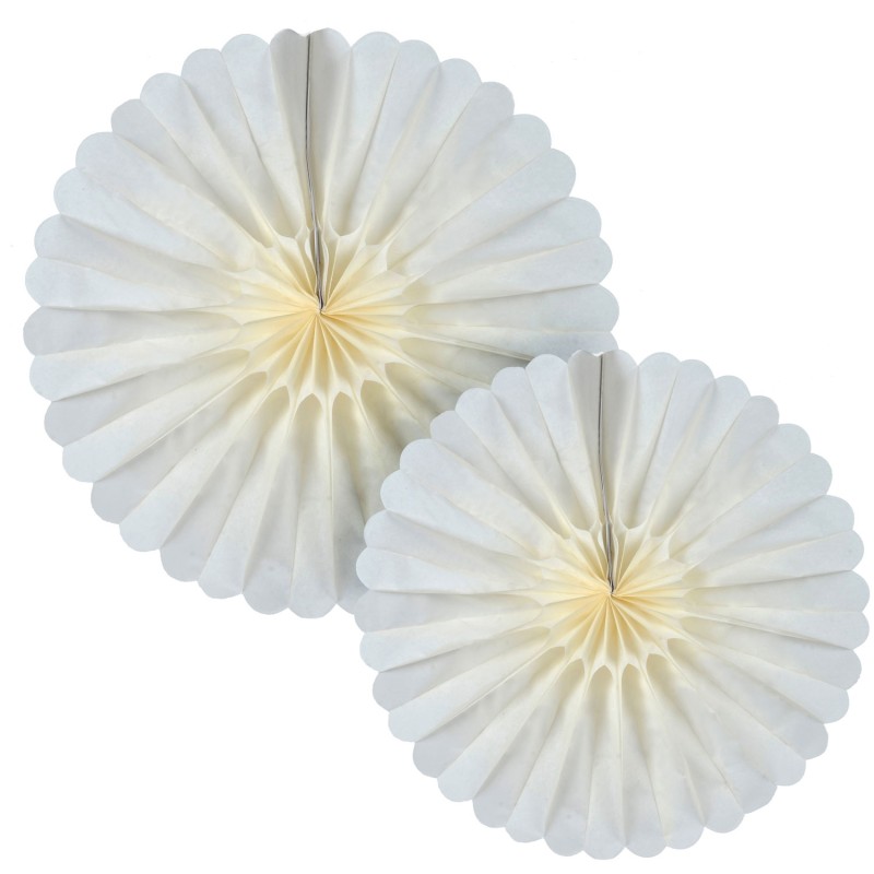 Комплект от 2 броя висящи парти декорации във формата на ветрило, изработени от хартия в цвят екрю.