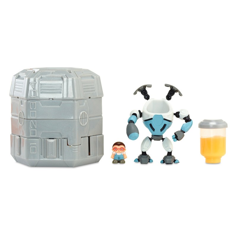 Комплектът съдържа: кутия с 5 нива, 5 части за сглобяване на робота, 2 оръжия, една фигурка на пилот, капсула с лепкаво желе, листовка за колекцията.