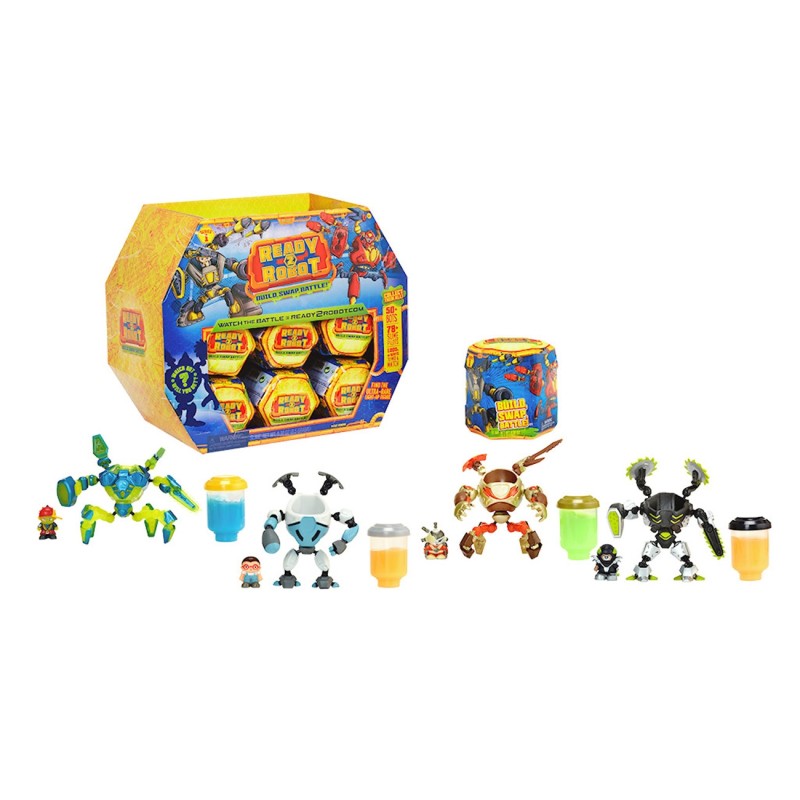 Създайте свои собствени бойци роботи, като сглобите парченцата, които ще откриете в 5-те различни нива на кутията Ready2Robot.