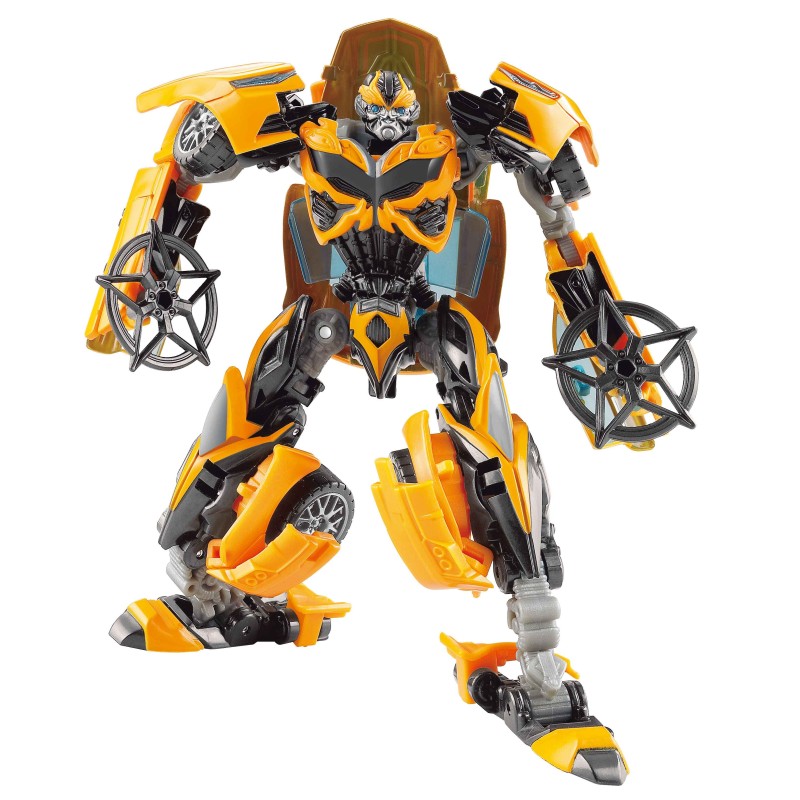 Детска играчка робот в жълт цвят с метални части, който се превръща в автомобил.