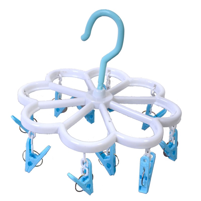 Висящ сушилник за дрехи със закачалка и 10 щипки за простриране.