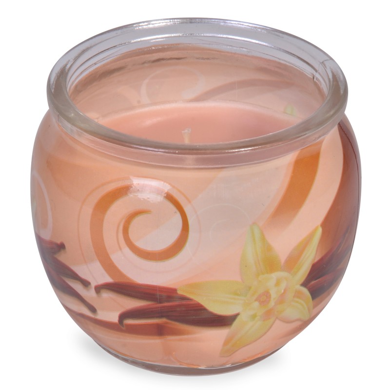 Ароматна свещ в стъклена чаша с аромат на ванилия.