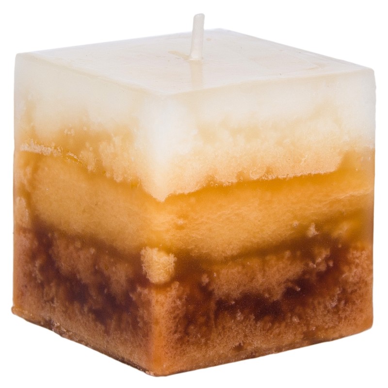 Декоративна квадратна свещ в два цвята - слонова кост и кафе, изработена от висококачествен парафин.