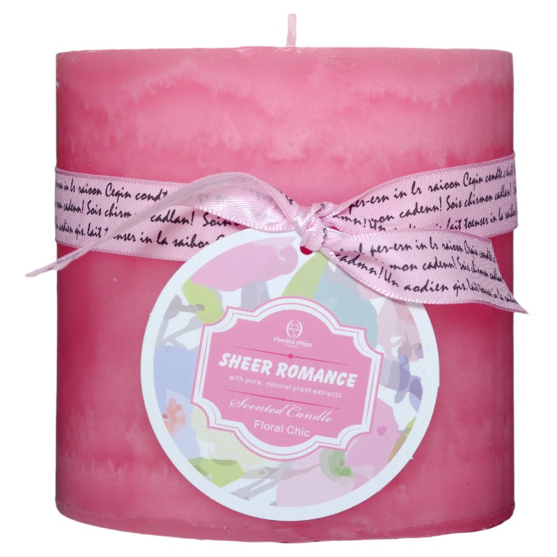 Декоративна ароматна свещ - тип колона в розов цвят с аромат на цветя.
