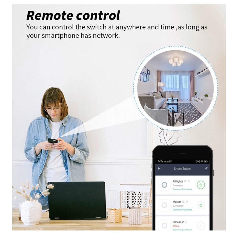 Този "умен" wifi контакт се управлява лесно както механично (бутон за включване/изключване на кутията), така и с помощта на всяко смарт устройство: смартфон, таблет, смарт телевизор, смарт кутия и др. Лесно поддържа гласов контрол за включване/изключване и стартиране на различни интелигентни сценарии.