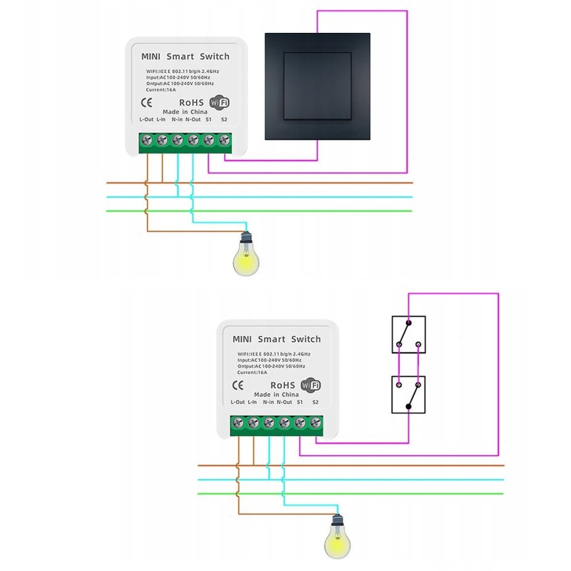 Това е миниатюрно Wi-Fi реле за управление на електрически уреди и осветление. Благодарение на размерите си, релето може лесно да се постави в гнездо, пред аналогов ключ или контакт, превръщайки го в "умно". Устройството работи с безплатното приложение Tuya smart или Smart life и може да взаимодейства с други модули за интелигентен дом, за да създава интелигентни сценарии. Например, когато влезете в стая, се задейства сензор за движение / отваряне на врата и релето веднага започва да свети в тази стая. За да инсталирате и конфигурирате, ще трябва да изтеглите безплатно приложение и да следвате инструкциите в самото приложение на украински. Релето поддържа интелигентни скриптове, таймери, обратно броене, скриптове.