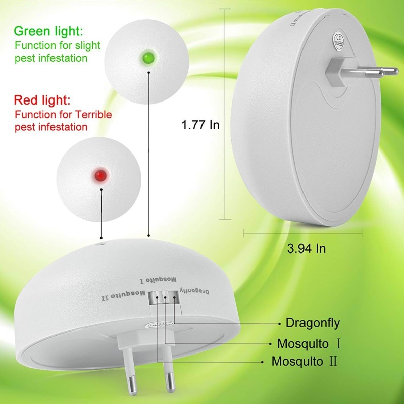 Този ултразвуков уред против комари е безопасен, икономичен и ефективен начин да се освободите от комари и мухи. Не губете време, поръчайте го сега и се насладете на спокойствие и комфорт във вашето жилище!