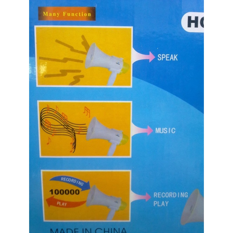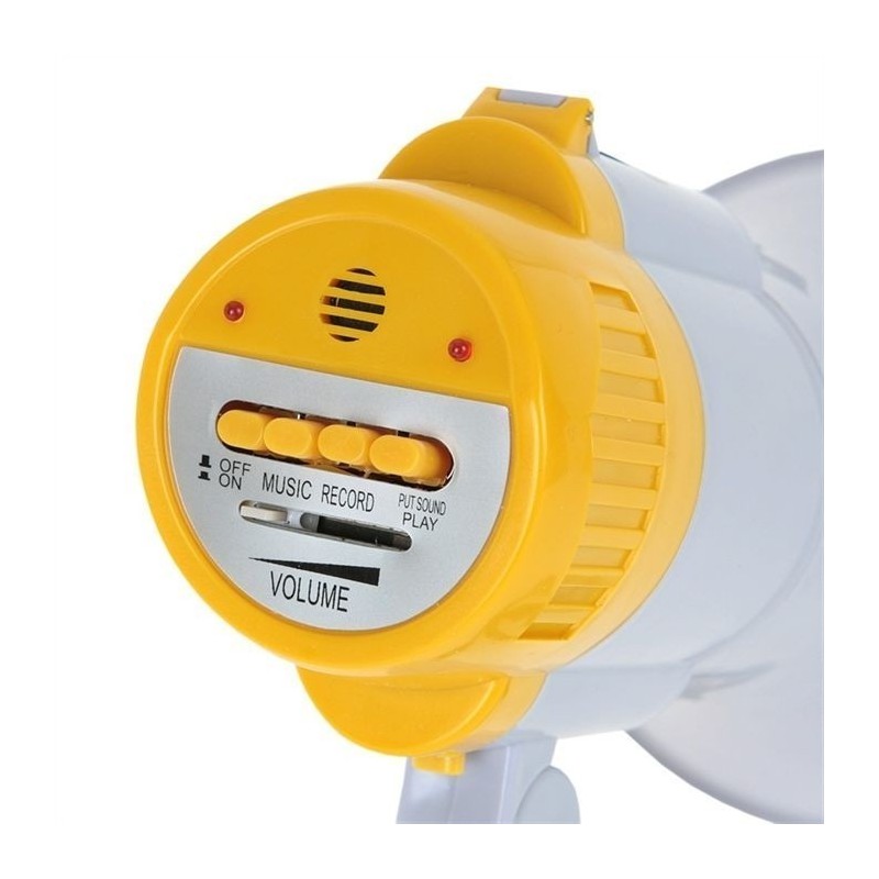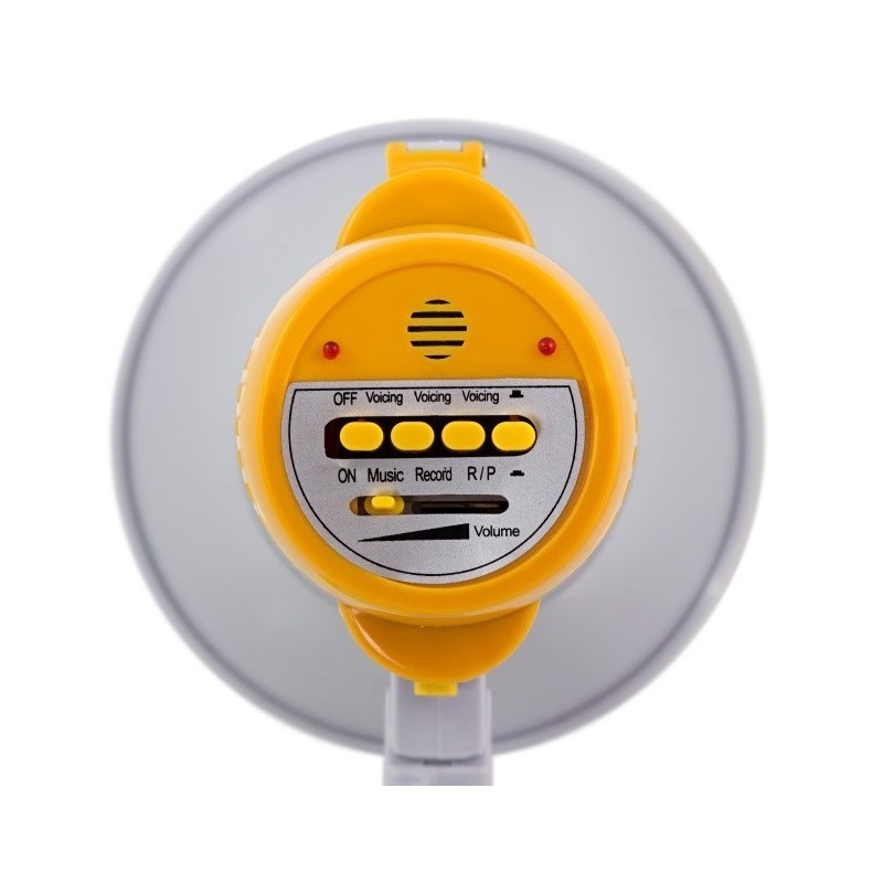 Този мегафон не само ви позволява да предавате звукови съобщения, но и има възможност за възпроизвеждане на музика или запис. Можете да настроите силата на звука според вашите нужди и предпочитания.
