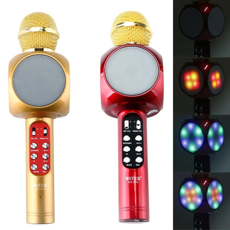 Опитайте новия ни безжичен блутут-караоке микрофон с вграден говорител от Wster, модел WS-1816. Този удивителен мултифункционален микрофон не само ви позволява да пеете караоке с чудесен звук, но също така разполага с множество други функции, които ще ви зарадват.