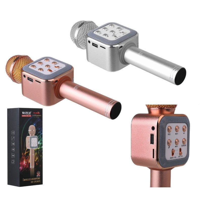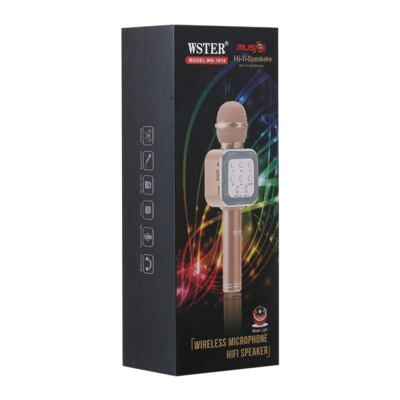 Караоке микрофонът BLUETOOTH WSTER WS-1816 е перфектният подарък за всеки, който обича да пее и се забавлява с музиката. Този безжичен микрофон е снабден с Bluetooth функция, вграден говорител и светлини, които могат да създадат уникална атмосфера на вашите караоке парти или семейни събирания.