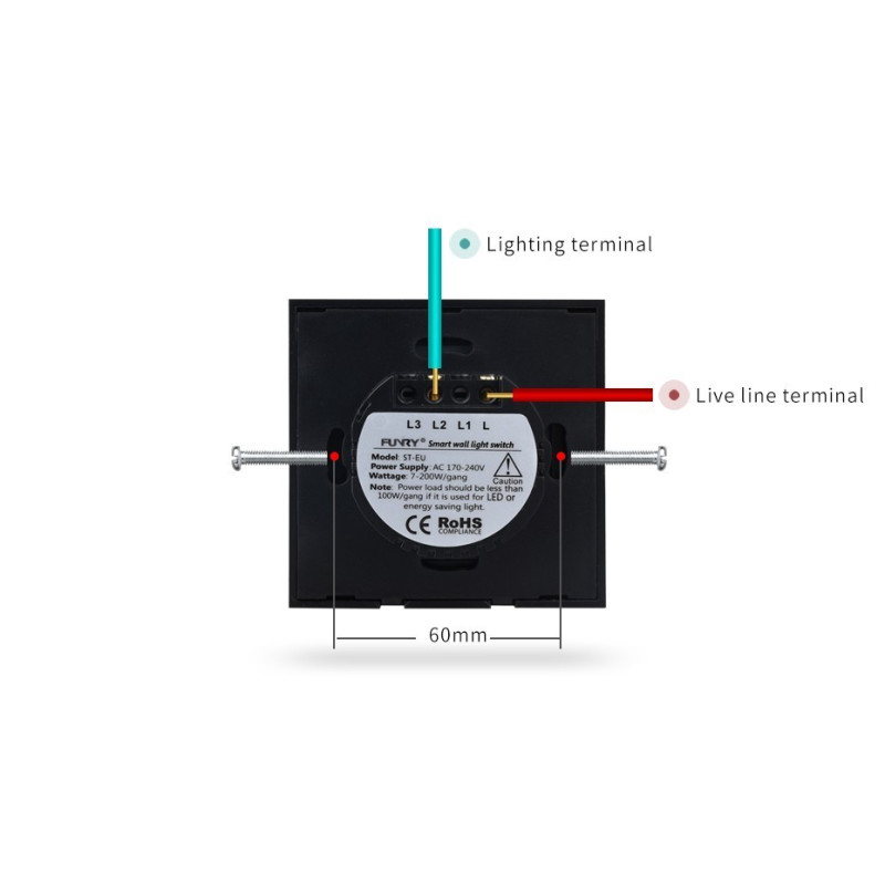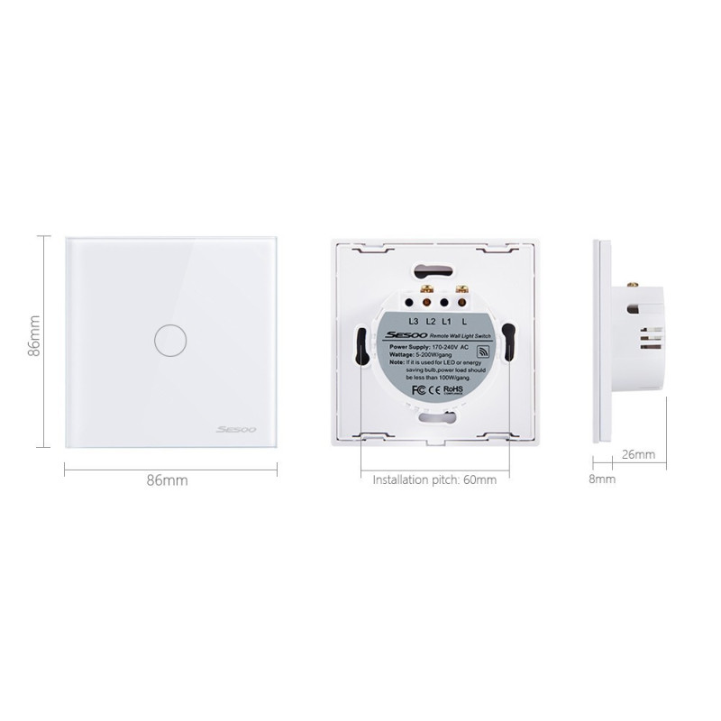 Независимо дали използвате единичен, двоен или троен ключ, той е снабден с кристален панел и дистанционно управление, което го прави много удобен за управление на интериорното осветление. Просто докоснете сензорния бутон на ключа и осветлението се включва или изключва.