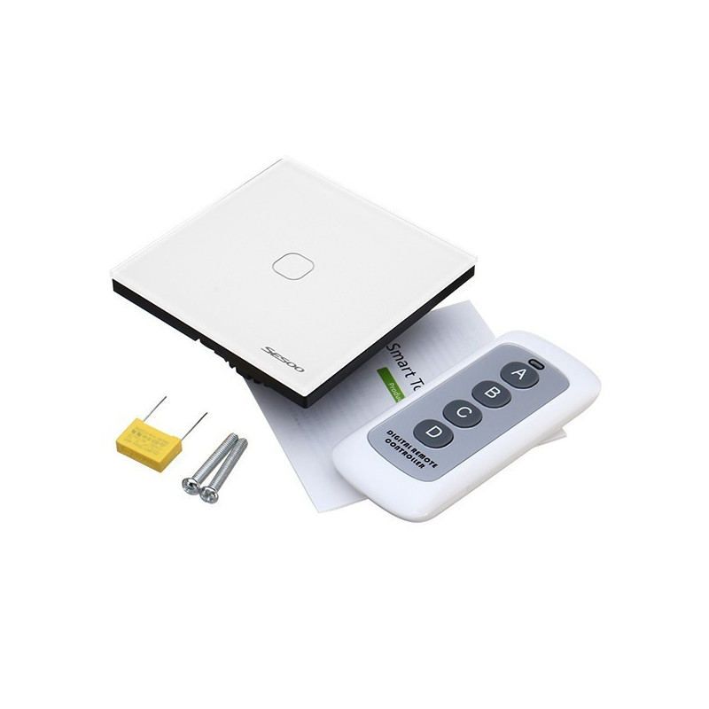 Съдържанието на пакета включва сензорен ключ (единичен, двоен или троен, според избора ви), дистанционно управление и монтажни елементи.