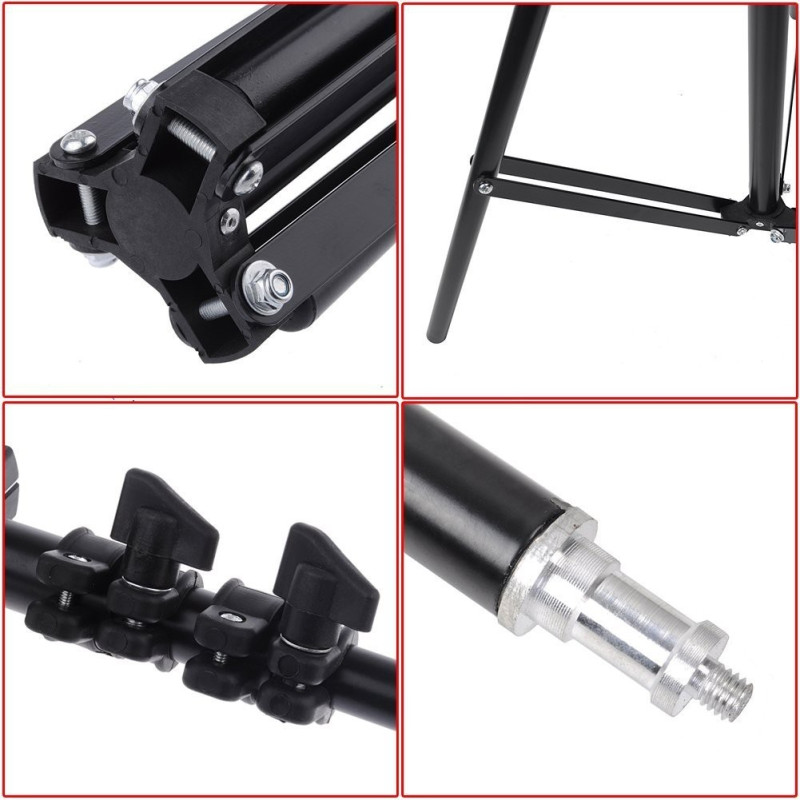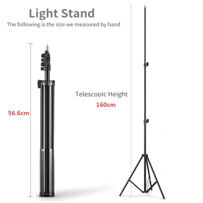 Ние предлагаме три размера на този трипод, за да отговорим на вашите специфични нужди. Размерът до 160 см е идеален за регулиране на височината от 54 до 160 см и има максимално натоварване до 3 кг. Размерът до 200 см ви позволява да регулирате височината от 68 до 200 см и има максимално натоварване до 3.5 кг. Ако търсите още по-голяма здравина и стабилност, предлагаме и размер до 200 см с по-дебели пръчки.