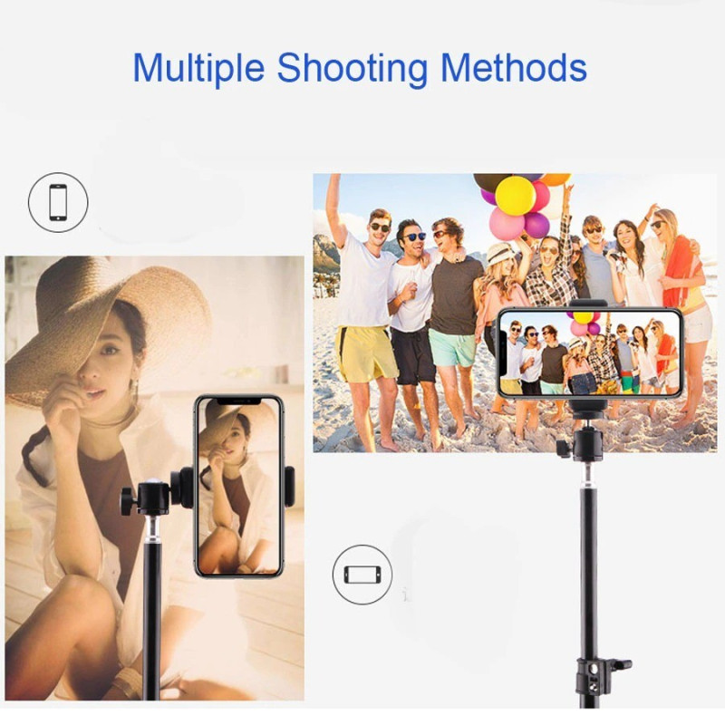 Триподът е изработен от висококачествен алуминий и разполага със заключване на краката и 3 секции на краката. В комплекта включваме само трипода, а аксесоарите като държачи за телефони, блутут дистанционни, селфи лампи и калъф се закупуват отделно.