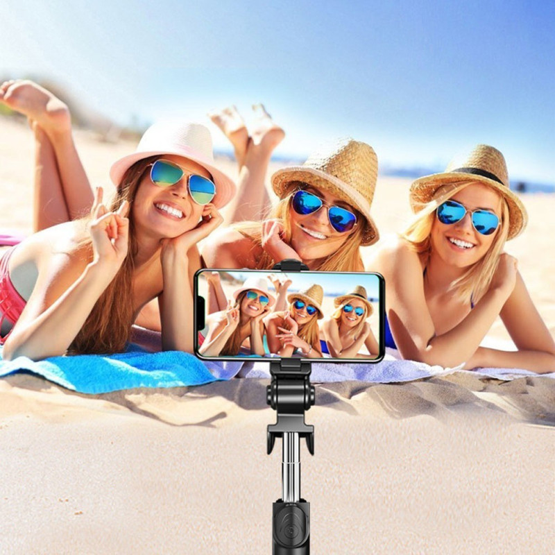 Имаме удоволствието да Ви представим 2в1 Селфи стик и статив за телефон с блутут бутон за снимане. Този многофункционален алуминиев Bluetooth селфи стик е идеален за всички любители на селфита и стрийминг на живо.