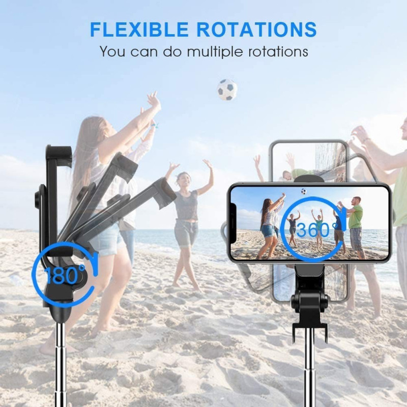 Този селфи стик е изработен от висококачествена алуминиева сплав, което го прави лек и здрав. Той е съвместим със смартфони с ширина от 58 мм до 88 мм, така че можете да използвате всякакъв тип телефон. Освен това, благодарение на възможността за 360 градусово завъртане, можете лесно да промените ориентацията на телефона от портретна към пейзажна, за да заснемете перфектната снимка.