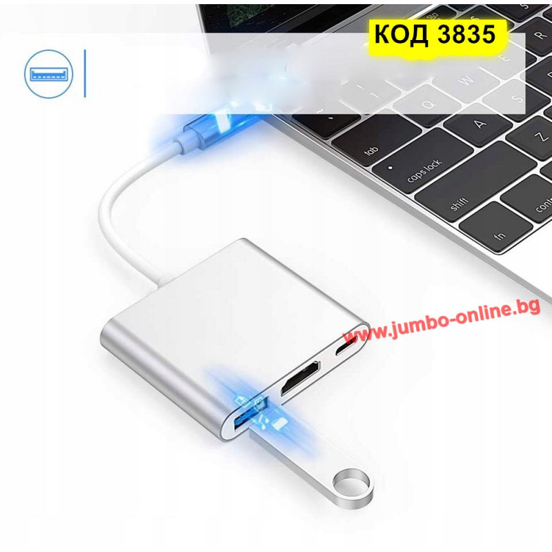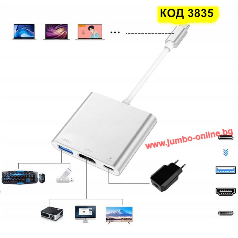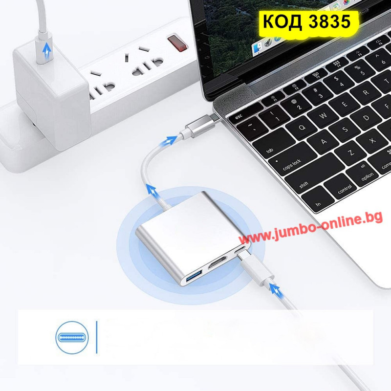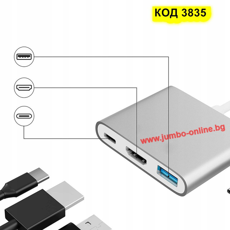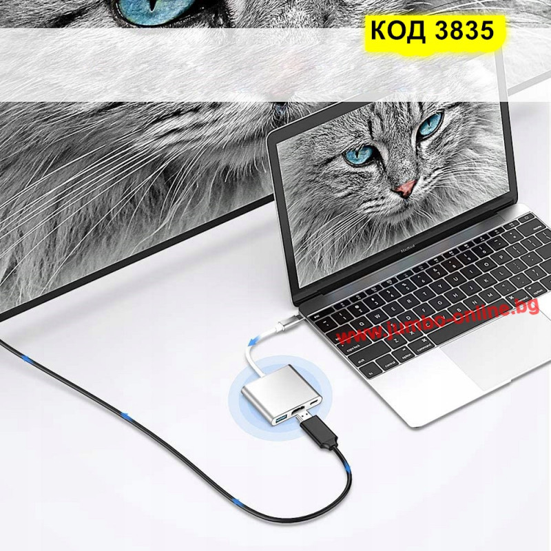 USB-C хъб към HDMI 4K адаптер 3 в 1