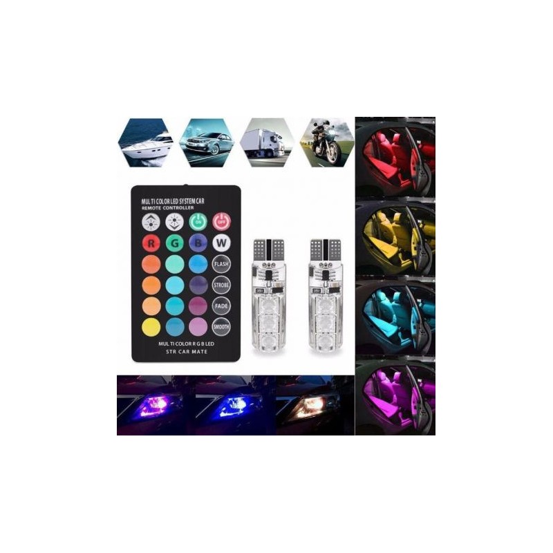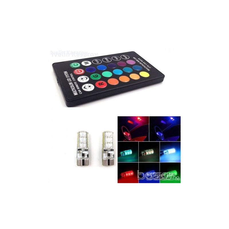 Комплект от 2бр. габаритни диодни крушки Multicolor с дистанционно управление за ефекти и смяна на цветовете.