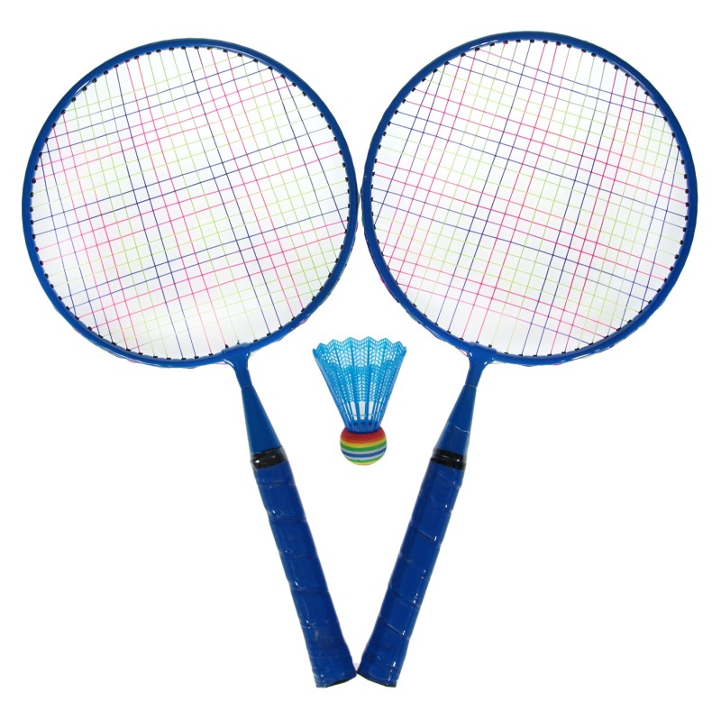 Комплект от два броя ракети за бадминтон, изработени от здрава и плътна пластмаса в син цвят в комплект с перце.